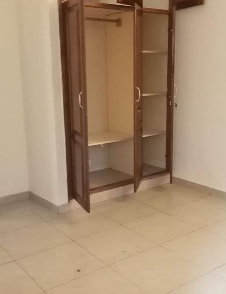 Appartement de 2 chambres avec placards grand salon entièrement splitté cuisine avec placards branchement machine à laver chauffe-eau WC visiteur au couloir et deux douches deux toilettes Terrasse avant parking caméra de surveillance Eau 24/24