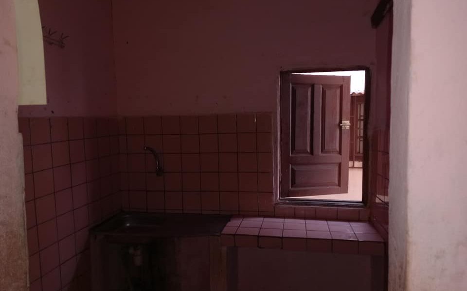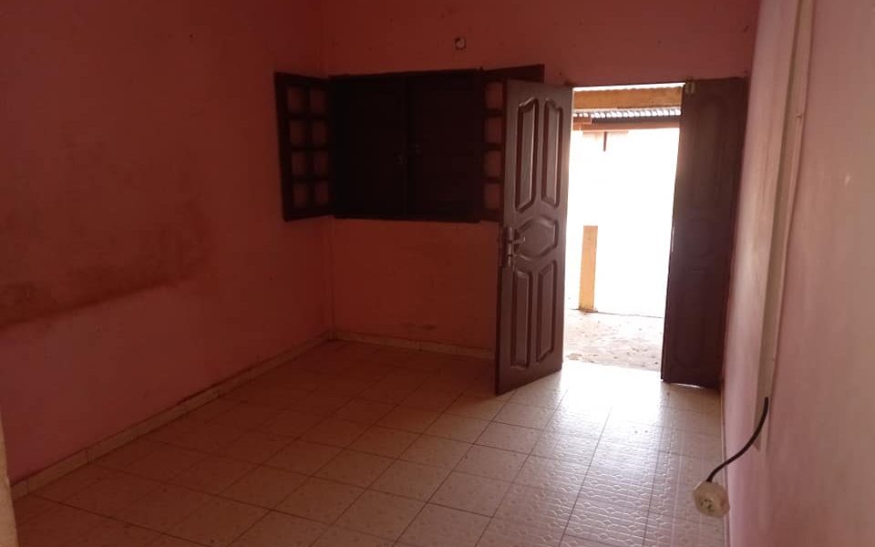 Grande chambre salon cuisine douche WC terrasse garage ouvert espace vert dans une clôture commune a noter compteur électricité personnel le prix 150 km quotient loyer plus charges la visite 5 km quartier pk 8 dans le quartier de las guy
